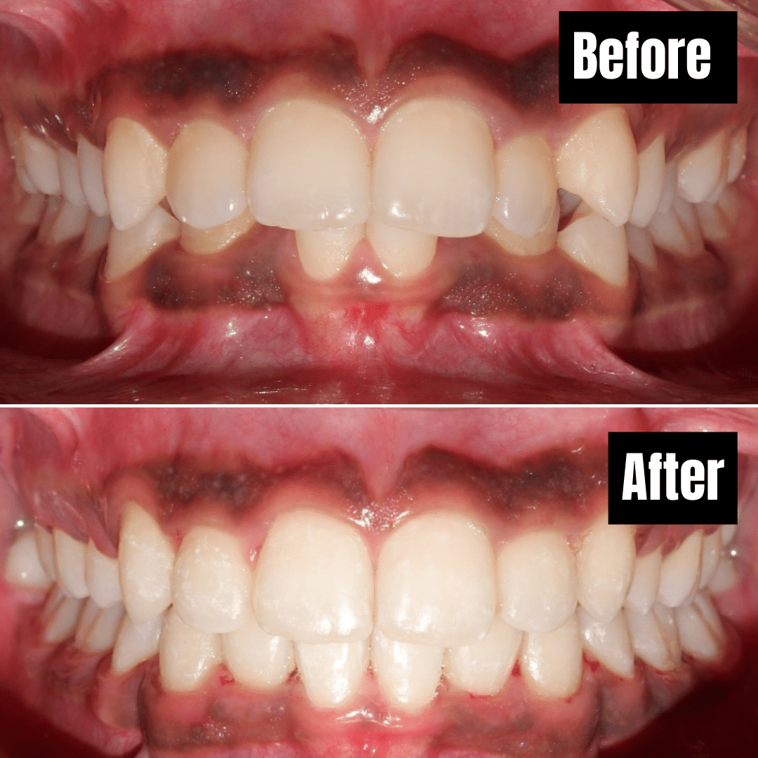 This occurs when there are gaps between the teeth and is the opposite of crowding. This can occur between two or more teeth and can be caused due to missing teeth, smaller teeth or oral habits like tongue thrusting, thumb sucking.